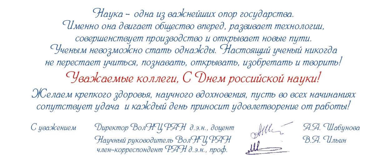 Поздравление c Днем российской науки от ВолНЦ РАН